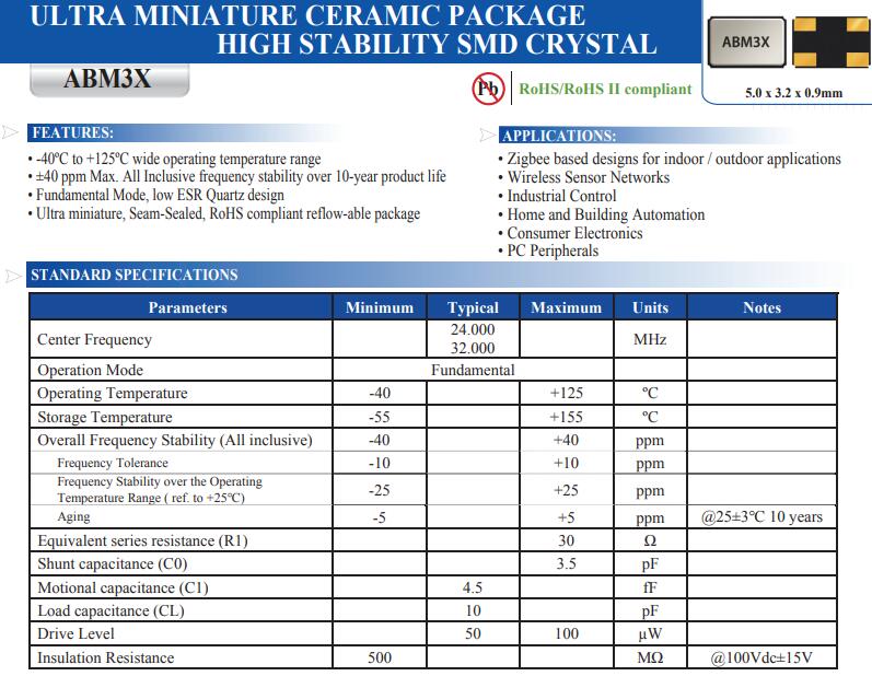更多>>Abracon晶振,ABM3X晶振,5032四腳晶振