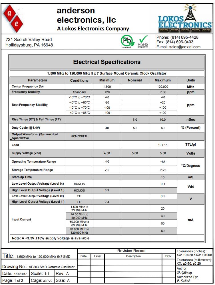 安德森晶振|AE803-T-H-B-4085-3R3-38M400000|6G光纖通道晶振規(guī)格表