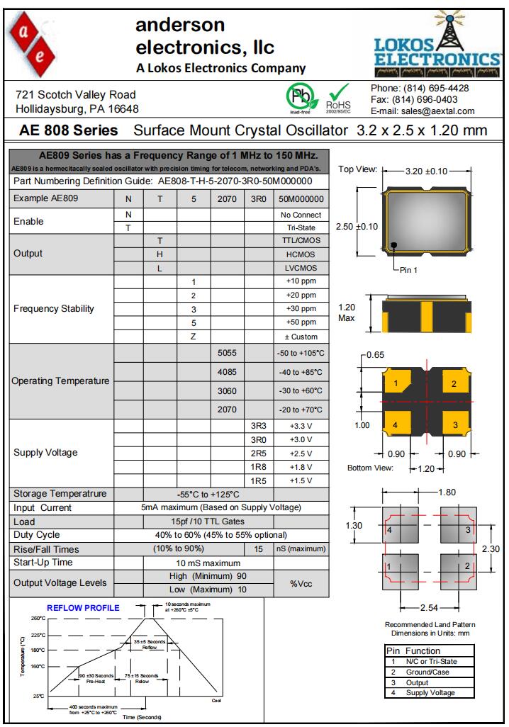 Anderson晶振|AE808-N-T-3-4085-3R0-50M000000|小體積有源晶振規(guī)格表