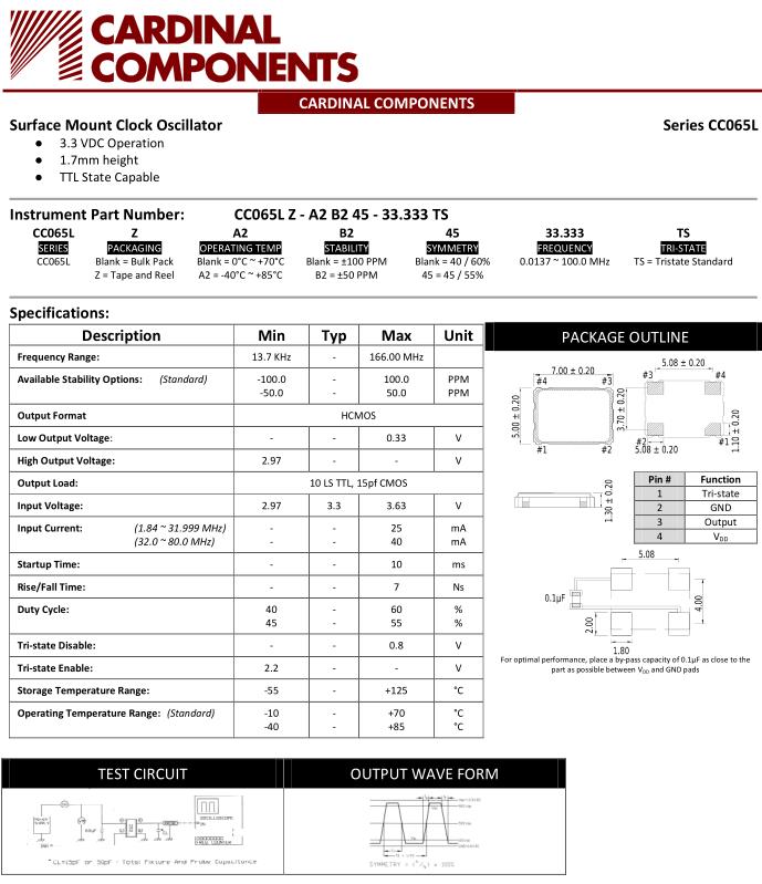 更多>>美國(guó)Cardinal晶振,CC065L有源晶振,CC065LZ-A2B245-24.000TS晶振