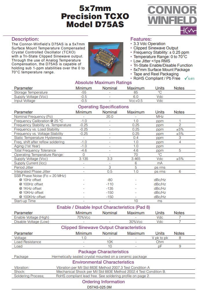 更多>>康納溫菲爾德晶振,D75AS晶振,7050溫補(bǔ)晶振