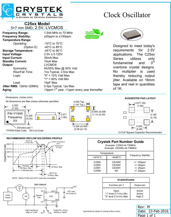 更多>>Crystek進(jìn)口晶體,C25xx系列有源振蕩器,C2592-20.000MHz晶振