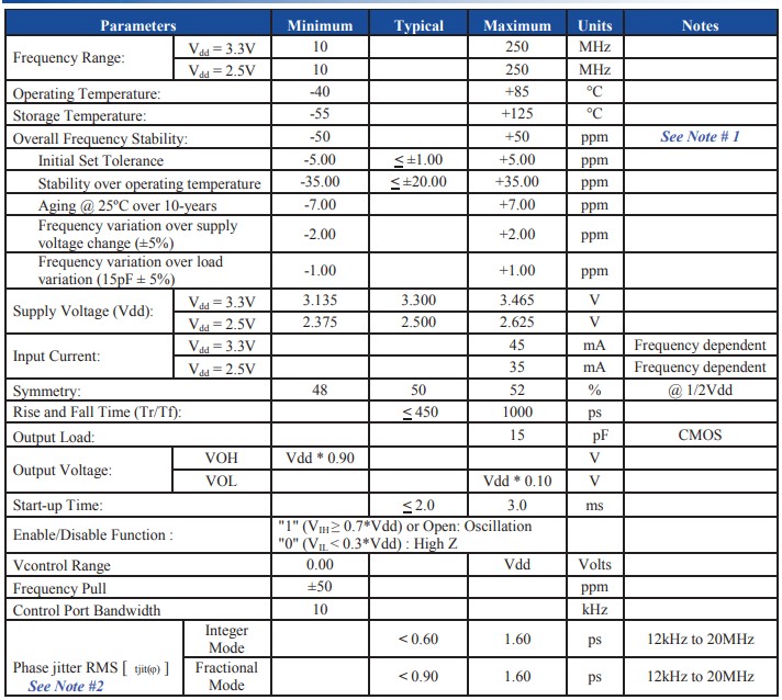 ABM10壓控晶振參數(shù)