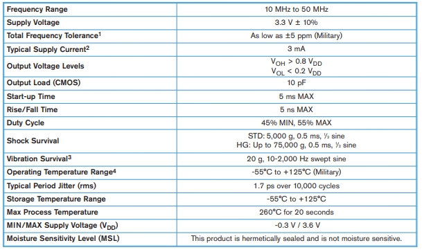 頻率穩(wěn)定度:-40℃~85℃工況下±30ppm~±100ppm可選,-55℃~125℃工況下±50ppm~±100ppm可選,第一年老化±5ppm(根據(jù)頻率調整);