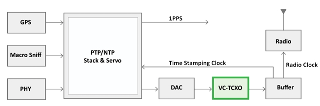 當使用 GPS 或 GNSS 計時技術(shù)時,與網(wǎng)絡(luò) PLL 標準相比,PLL 循環(huán)可以很寬,環(huán)路帶寬為 10Hz 或更高。商用 GPS 模塊提供數(shù)十納秒 (ns) 的相位對準精度,TCXO (100 – 500ppb) 作為源定時參考。使用網(wǎng)絡(luò)偵聽 (Macro Sniff) 技術(shù)應(yīng)該可以獲得類似的結(jié)果?;?Packet 的 timing 技術(shù)更具不確定性,性能取決于許多因素。