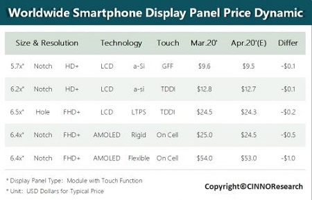 ④ 由于需求下滑及新項(xiàng)目出現(xiàn)推遲情況,預(yù)估4月a-Si/LTPS智能機(jī)面板價(jià)格下降約$0.1~$0.2 美金,AMOLED智能機(jī)面板價(jià)格下降$0.5~$1.0 美金.