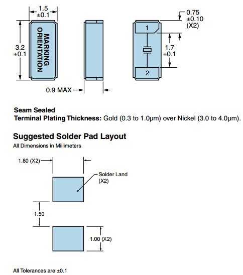 | 頻率溫度特征 | f_tem | ±30 × 10-6/-20°C ~ +70°C | 超出標準的規(guī)格請聯(lián)系我們. |