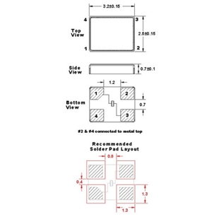 FOX晶振,FC3BACBDI40.0-T3,6G基站晶振尺寸圖
