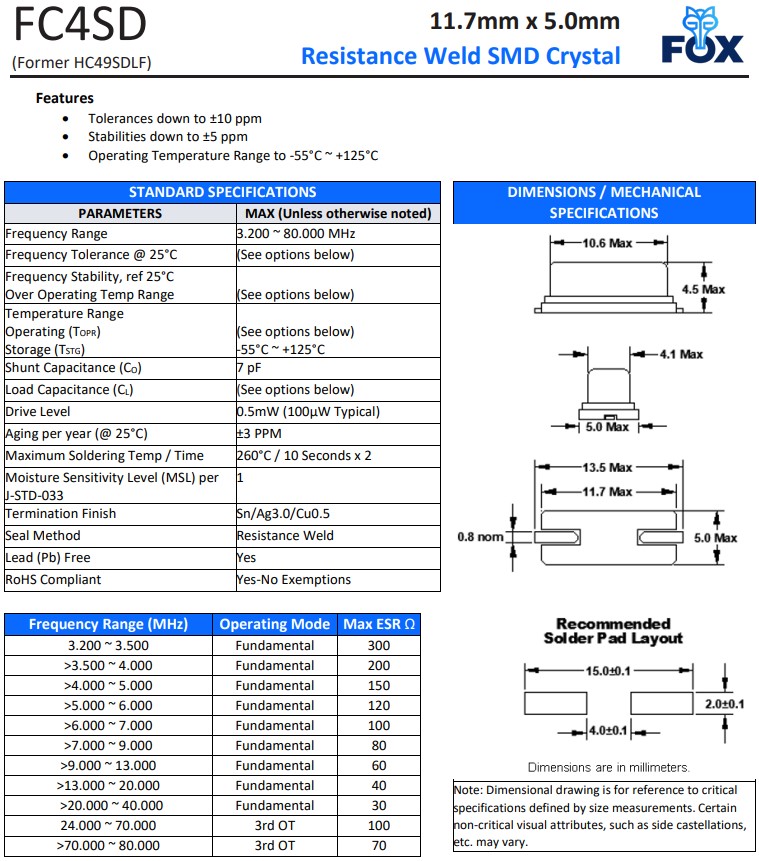 | FC4SDCBMF14.7456-T1 | Fox晶振 | FC4SD | 14.7456 MHz |