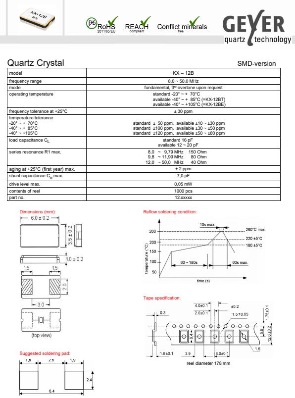 格耶德國(guó)晶振,KX-12B無(wú)源諧振器,6035mm兩腳晶振,貼片晶振本身體積小,超薄型石英晶體振蕩器,特別適用于有目前高速發(fā)展的高端電子數(shù)碼產(chǎn)品,因?yàn)?strong>貼片晶振本身小型化需求的市場(chǎng)領(lǐng)域,小型,薄型是對(duì)應(yīng)陶瓷振蕩器(偏差大)和普通的石英晶體振蕩器(偏差小)的中間領(lǐng)域的一種性?xún)r(jià)比較出色的產(chǎn)品.產(chǎn)品廣泛用于筆記本電腦,無(wú)線電話,衛(wèi)星導(dǎo)航SSD,USB,Blu-ray等用途,符合無(wú)鉛焊接的高溫回流焊曲線特性.