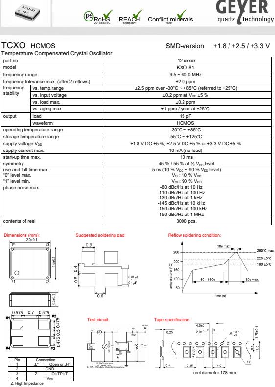 更多>>格耶進(jìn)口晶振,KXO-81小尺寸晶振,溫補(bǔ)晶振