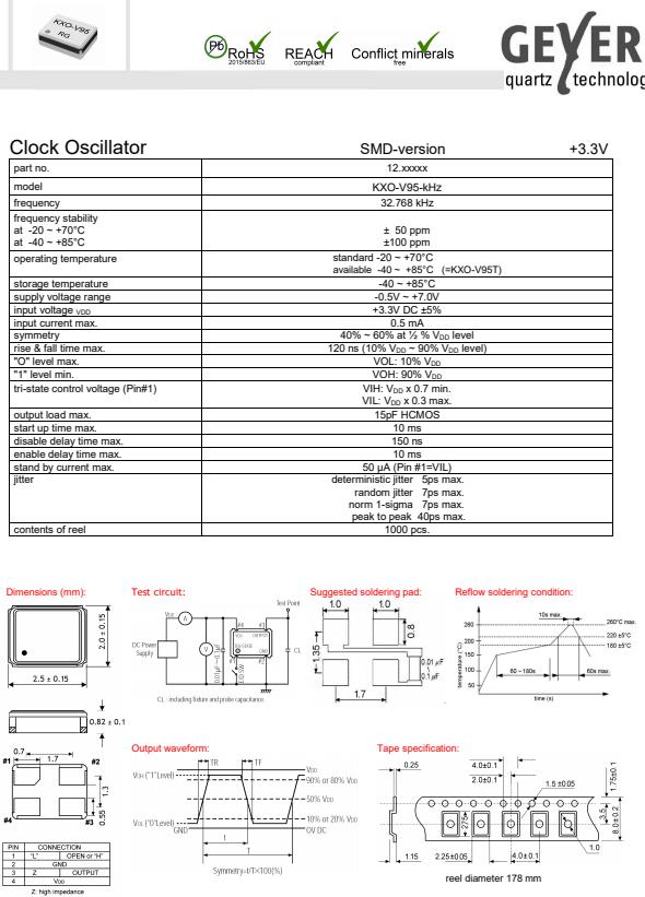 更多>>GEYER格耶晶振,KXO-V95-kHz時鐘晶振,高性能振蕩器