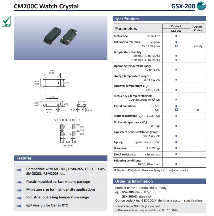 高利奇晶振,GSX-200晶振,8038四腳晶振小體積SMD時鐘晶體諧振器,是貼片音叉晶體,千赫頻率元件,應(yīng)用于時鐘模塊,智能手機,全球定位系統(tǒng),因產(chǎn)品本身體積小,SMD編帶型,可應(yīng)用于高性能自動貼片焊接,被廣泛應(yīng)用到各種小巧的便攜式消費電子數(shù)碼時間產(chǎn)品,環(huán)保性能符合ROHS/無鉛標(biāo)準(zhǔn).