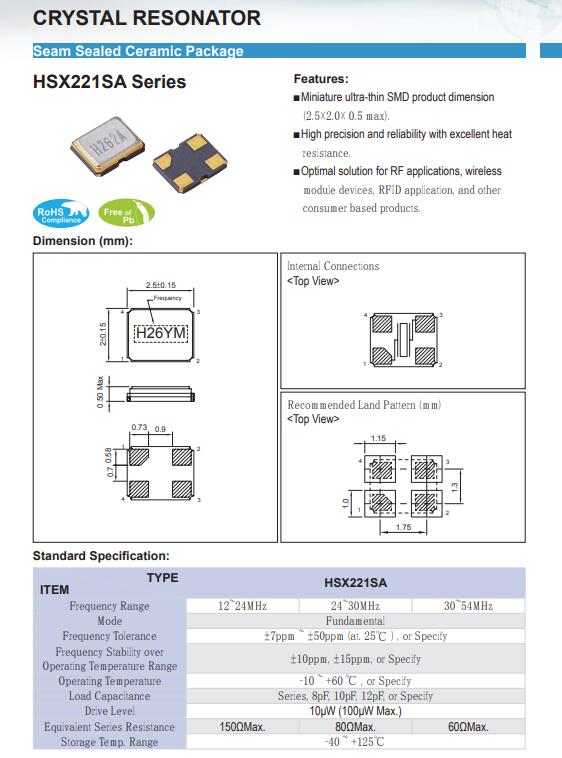 | 老化率 | ±5ppm/year max |