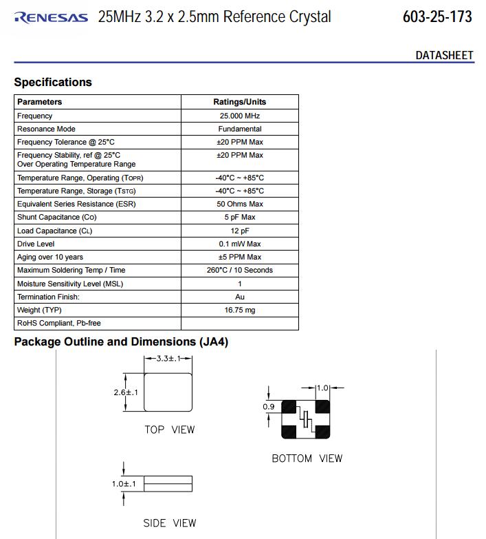IDT晶振,603-25-173JA4I晶振,25M石英晶振