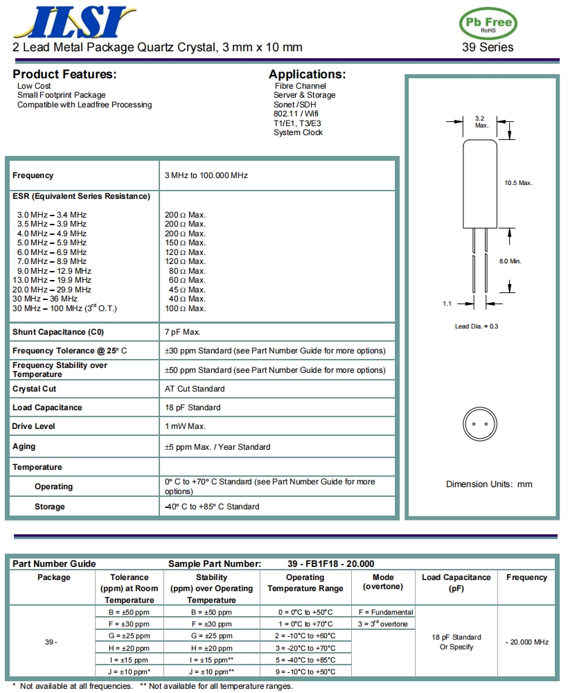 | ILCX13-JH5F8-39.000 MHz | ILSI | ILCX13 | -40°C ~ 85°C | 39 MHz | ±10ppm | 8 pF |