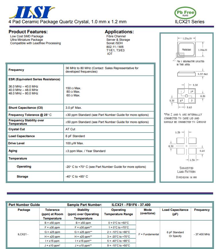 | ILCX13-HH5F18- 24.000 MHz | ILSI | ILCX13 | -40°C ~ 85°C | 24 MHz | ±20ppm | 18 pF |