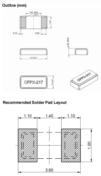 IQD晶振,CFPX-217無源晶振,6G路由器晶振尺寸圖