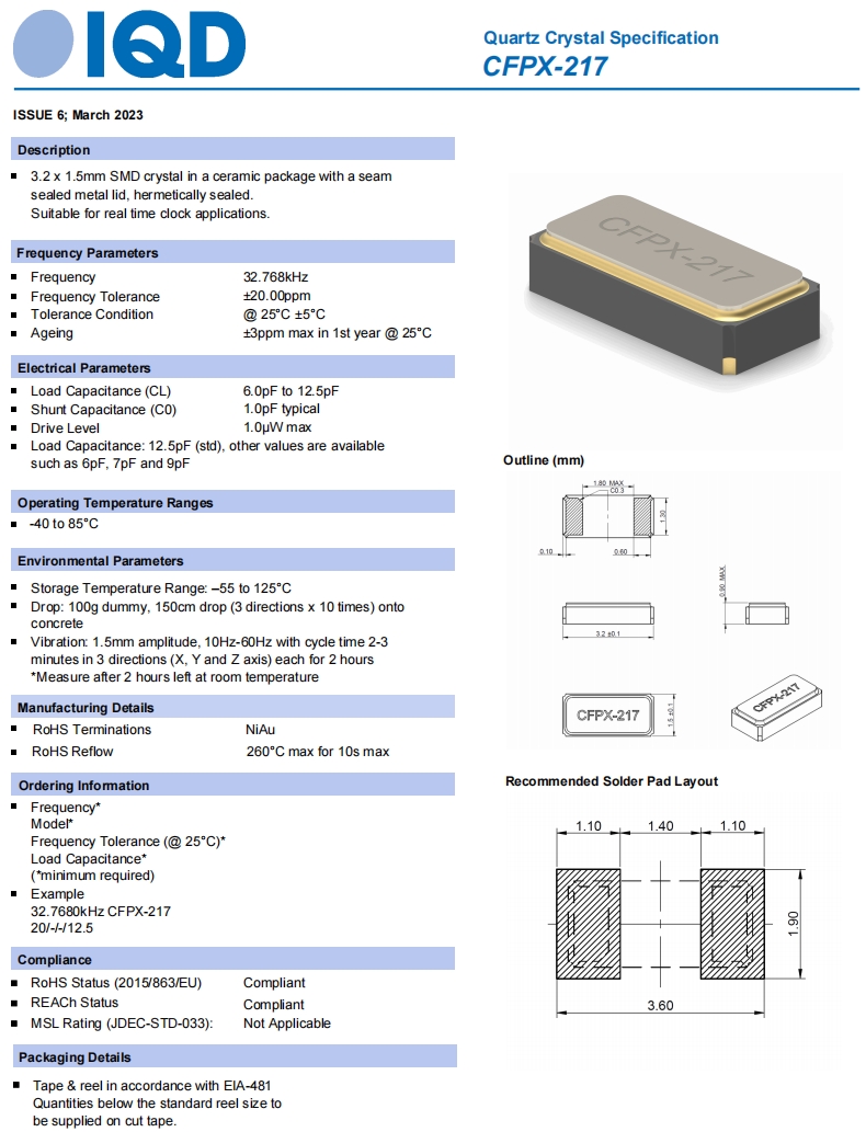 IQD晶振,CFPX-217無源晶振,6G路由器晶振規(guī)格表