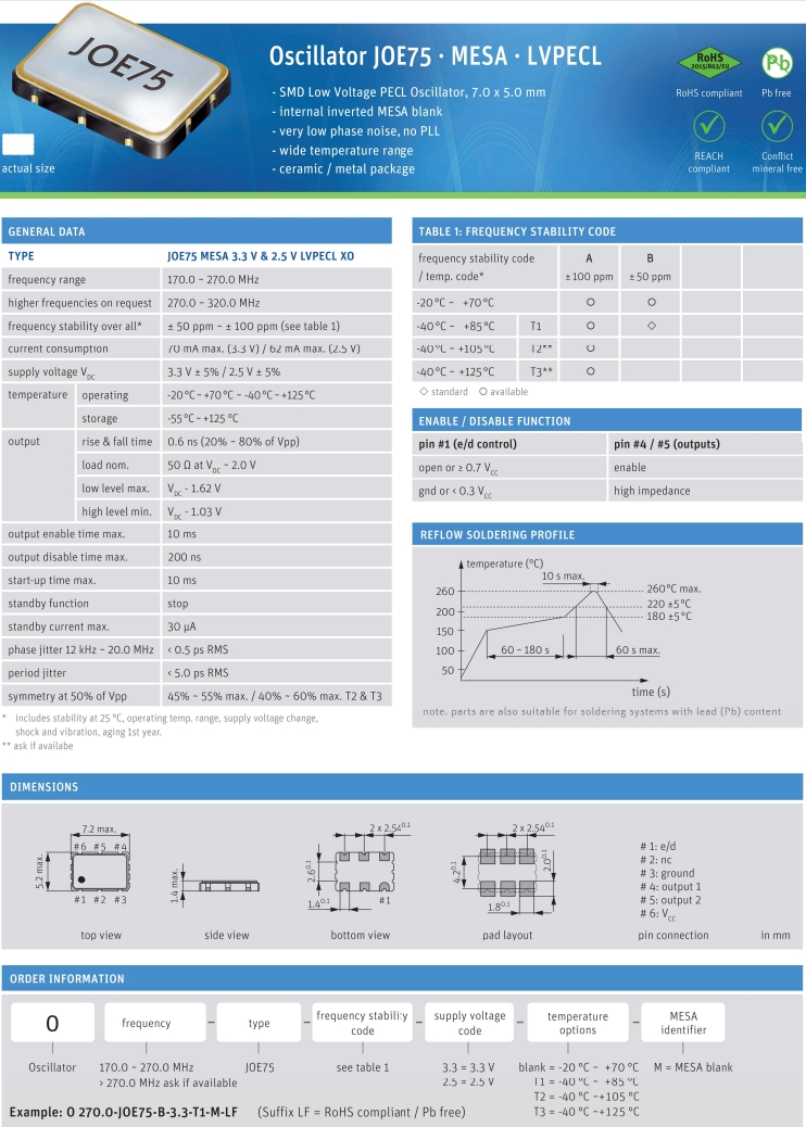 Jauch晶振,O 212.5-JOE75-A-3.3-T3-M-LF,6G信號接收器晶振規(guī)格表