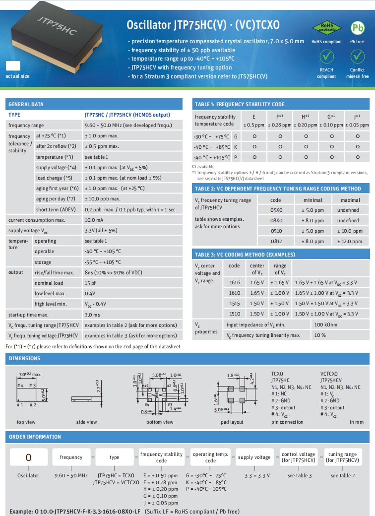 O 48.0-JTP75HC-H-G-3.3-LF,Jauch品牌,6G移動無線電晶振規(guī)格表