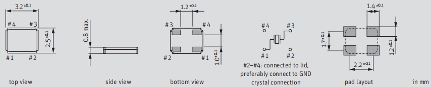 Q 16.0-JXS32-10-30/50-T2-FU-LF-Jauch品牌-6G基站晶振尺寸圖