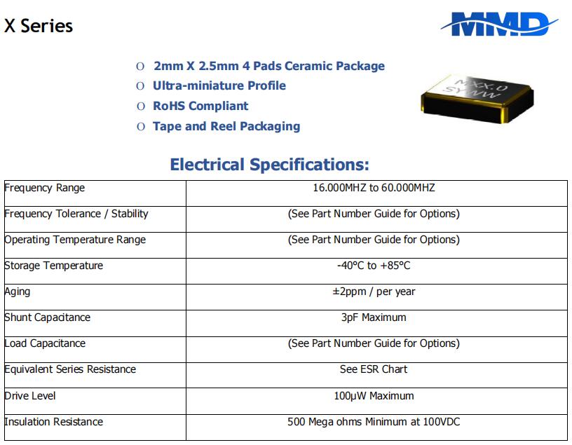 MMDCOMP晶振,X20AB1-18.000MHZ-T,6G路由器晶振規(guī)格表