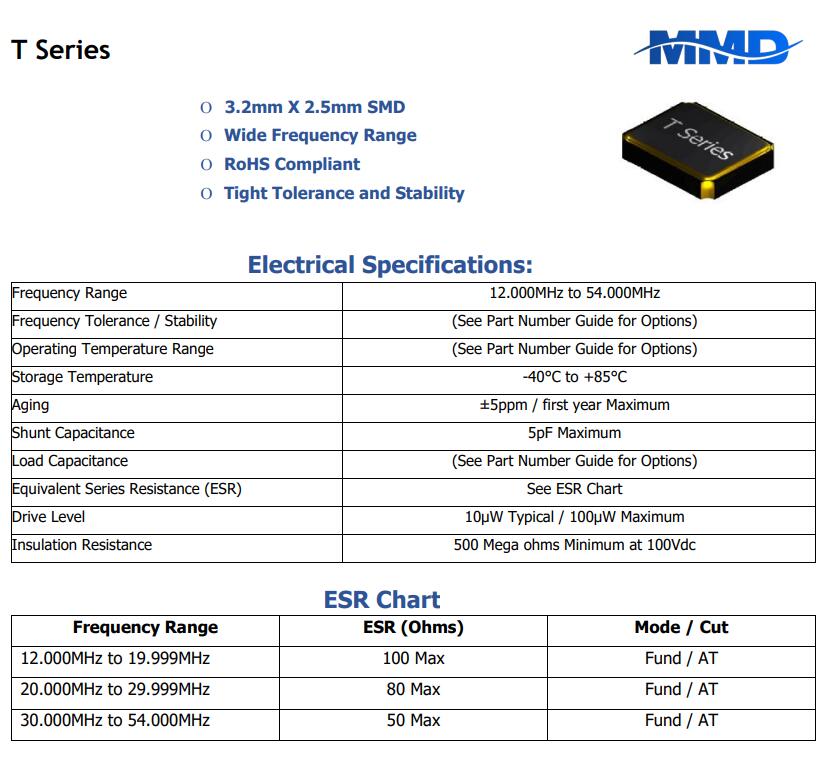 Mmdcomp晶振,T12BC1-19.200MHZ-T,6G無(wú)線模塊晶振規(guī)格表