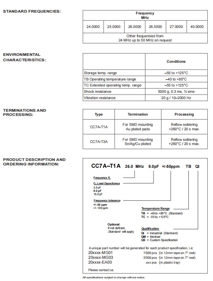 CC7A-T1A-26.000MHz-3.0pF-50ppm-TA-QI,6G以太網(wǎng)晶振,高頻貼片石英晶體規(guī)格表