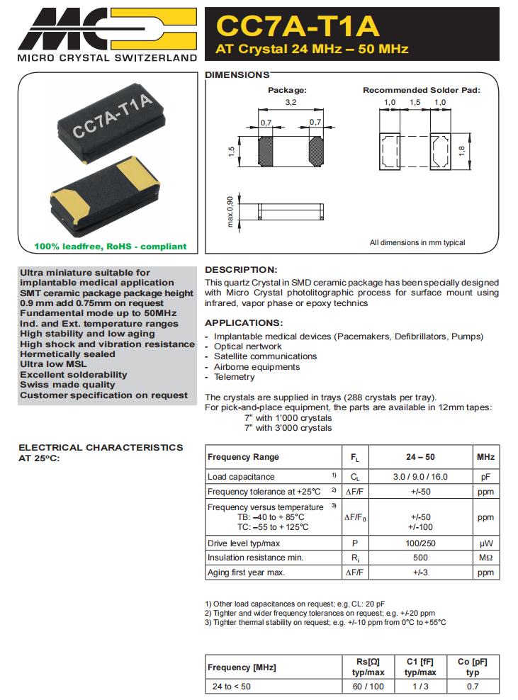 | CM7V-T1A-32.768kHz-12.5pF-100PPM-TA-QC | Micro Crystal | 晶體 32.768 kHz 12.5 pF +/-100 PPM -40/+85C |