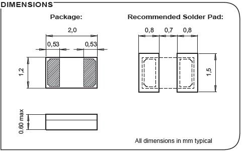 CC8V-T1A-32.768kHz-12.5pF-20ppm-TB-QM,2012mm音叉晶體,醫(yī)療設(shè)備專用晶振尺寸圖