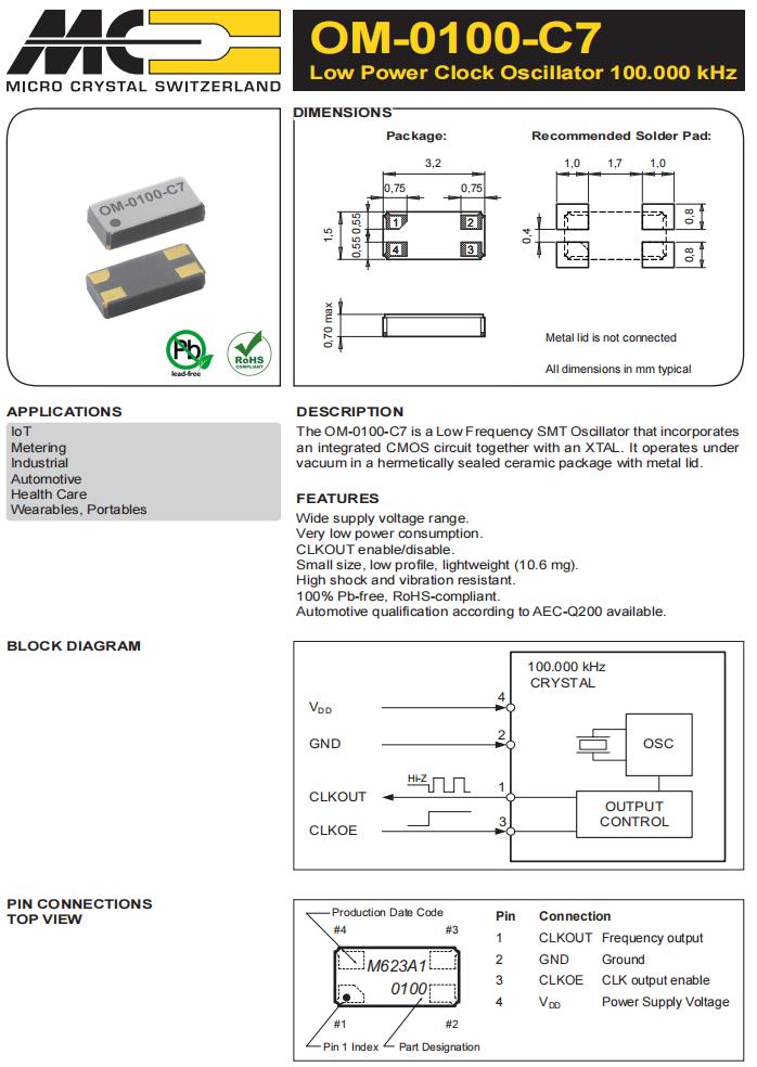 | OM-7604-C7-32.768kHz-20PPM-TB-QC | Micro Crystal | 標(biāo)準(zhǔn)時鐘振蕩器 32.768 kHz +/-20 PPM -40/+125C |