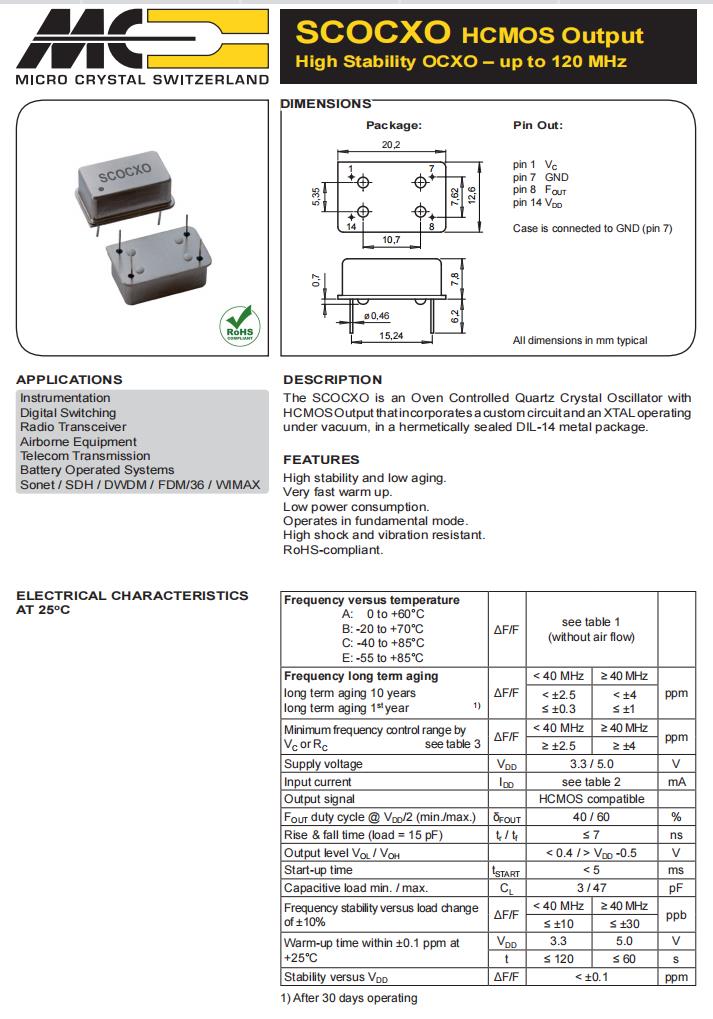 SCOCXOW-EV3-25.000MHz-D2|高穩(wěn)定性晶振|6G發(fā)射器晶振規(guī)格表