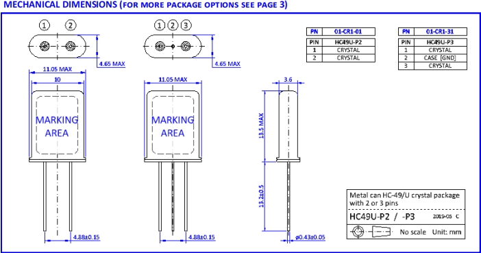 NKG晶振|01-CR1-31-20M000-T18-3050E-EXT|三腳插件晶振尺寸圖