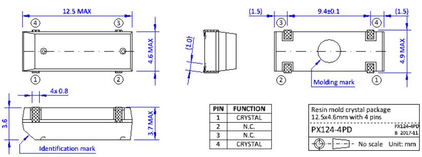 ●SMD樹(shù)脂模具封裝尺寸12.5 x 4.6 x 3.6mm, 4個(gè)j型引線