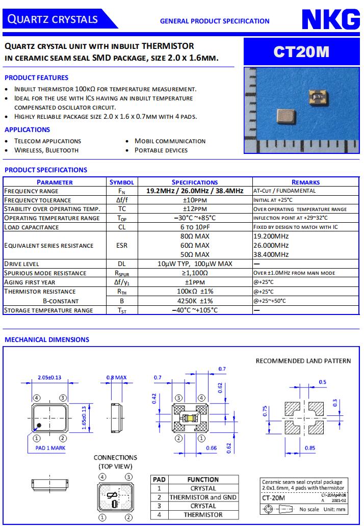 NKG Crystal|CT20M40.000F10V1Y-100|超小型熱敏晶振規(guī)格表