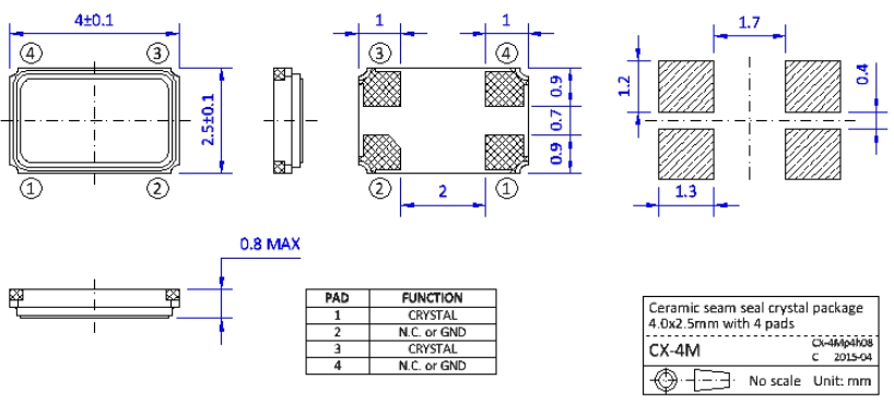 ●微型包裝尺寸為4.0 x 2.5 x 0.7mm,有4個(gè)襯墊