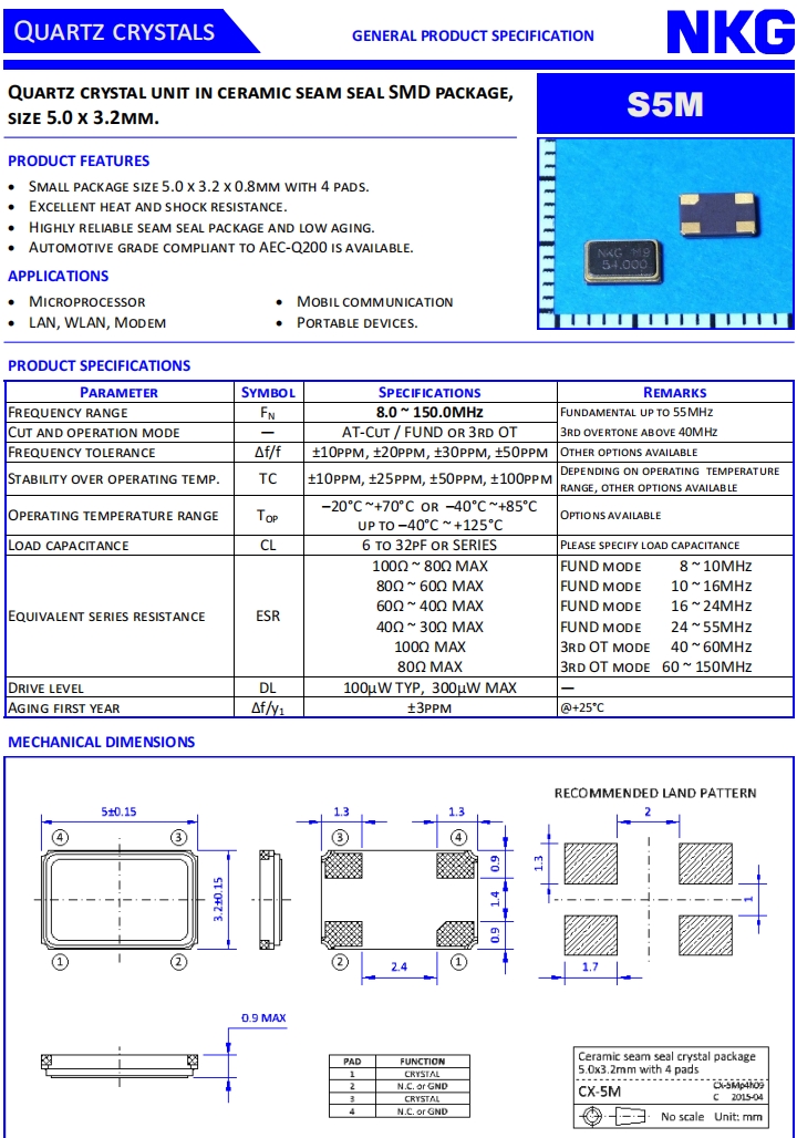 香港NKG晶體|S5M12.288F10M23-EXT|6G無線局域網(wǎng)晶振規(guī)格表