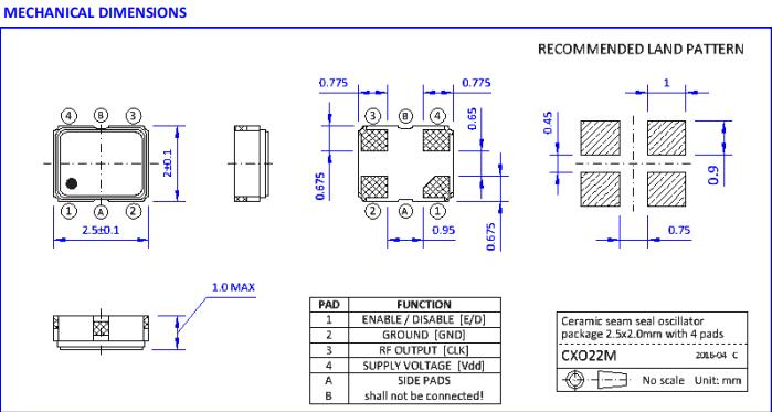 ●超小SMD包裝尺寸為2.5 x 2.0 x 1.0mm,帶有4個(gè)襯墊