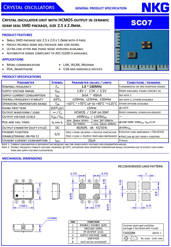 NKG晶振|SCO7-6-G-40.0000-WTS-EXT|2520mm晶振特點(diǎn)
