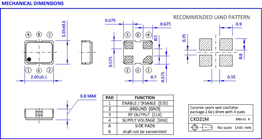NKG晶振|SCO8-6-B-27.0000-WTS-EXT|2016超小振蕩器尺寸圖