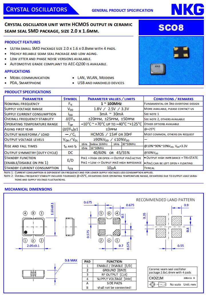 NKG晶振|SCO8-6-B-27.0000-WTS-EXT|2016超小振蕩器規(guī)格表