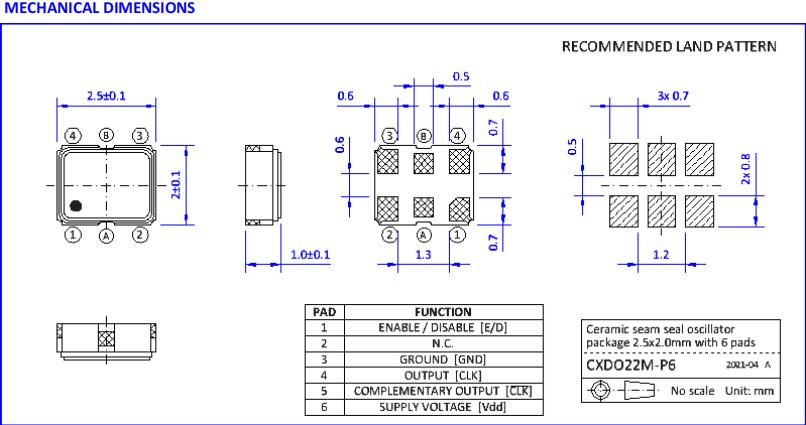 ●SMD封裝尺寸為2.5 x 2.0 x 1.0mm,帶有6個(gè)襯墊