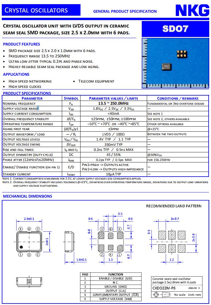 NKG晶振|SDO7-6-D-120.00-WNS-EXT|超小型差分晶振規(guī)格表