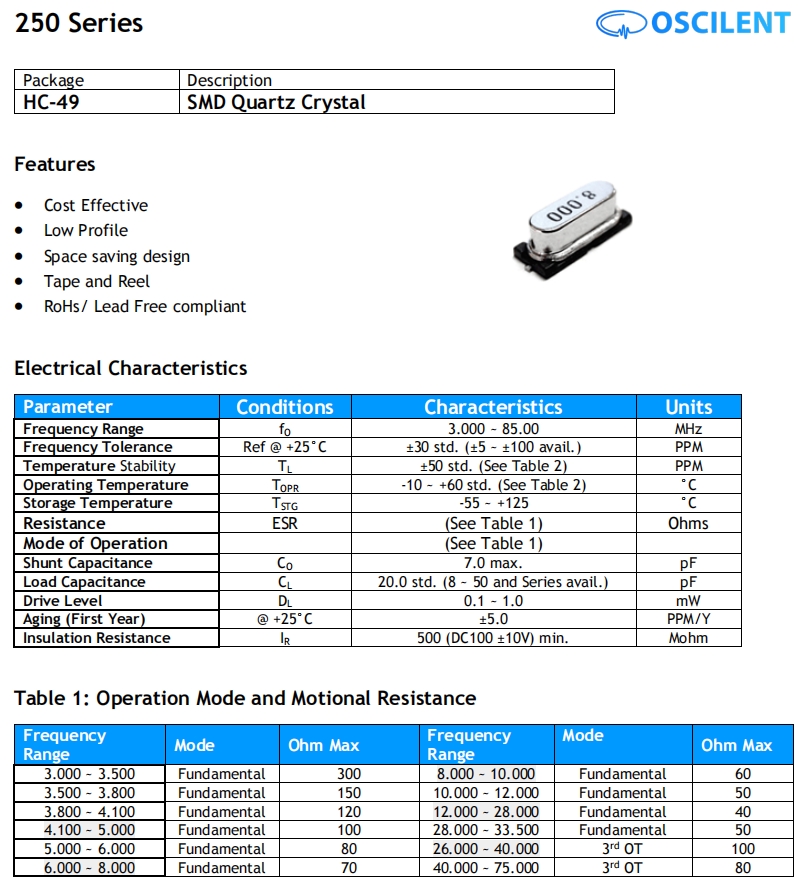 OSCILENT晶振,250-14.7456M-20-05KS-TR,6G無(wú)線局域網(wǎng)晶振規(guī)格表