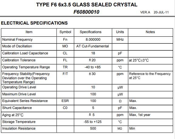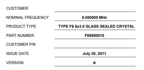 | 型號 | F60800010晶振 |