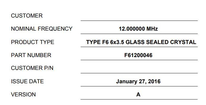 | 型號(hào) | F61200046晶振 |