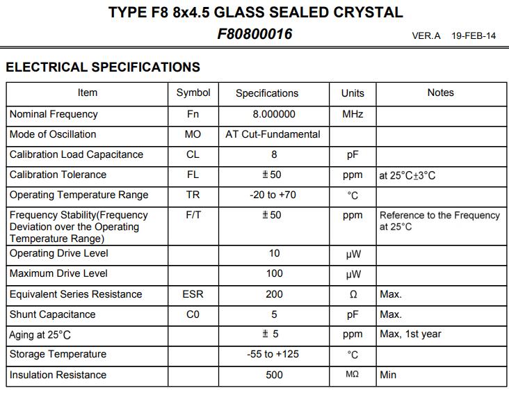 | 型號(hào) | F80800016晶振 |