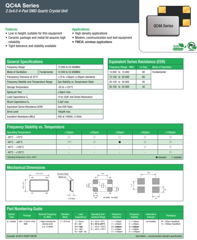 更多>>QANTEK晶振,QC4A晶振,4025四腳晶振