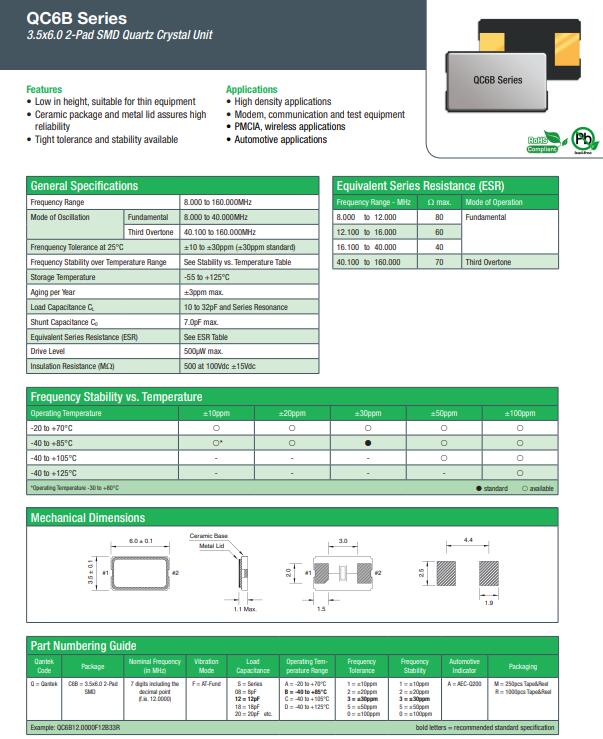 為追求這一愿景,QANTEK制造符合ISO / TS質(zhì)量標準。QANTEK石英晶體,QC6B晶振,6035二腳晶振